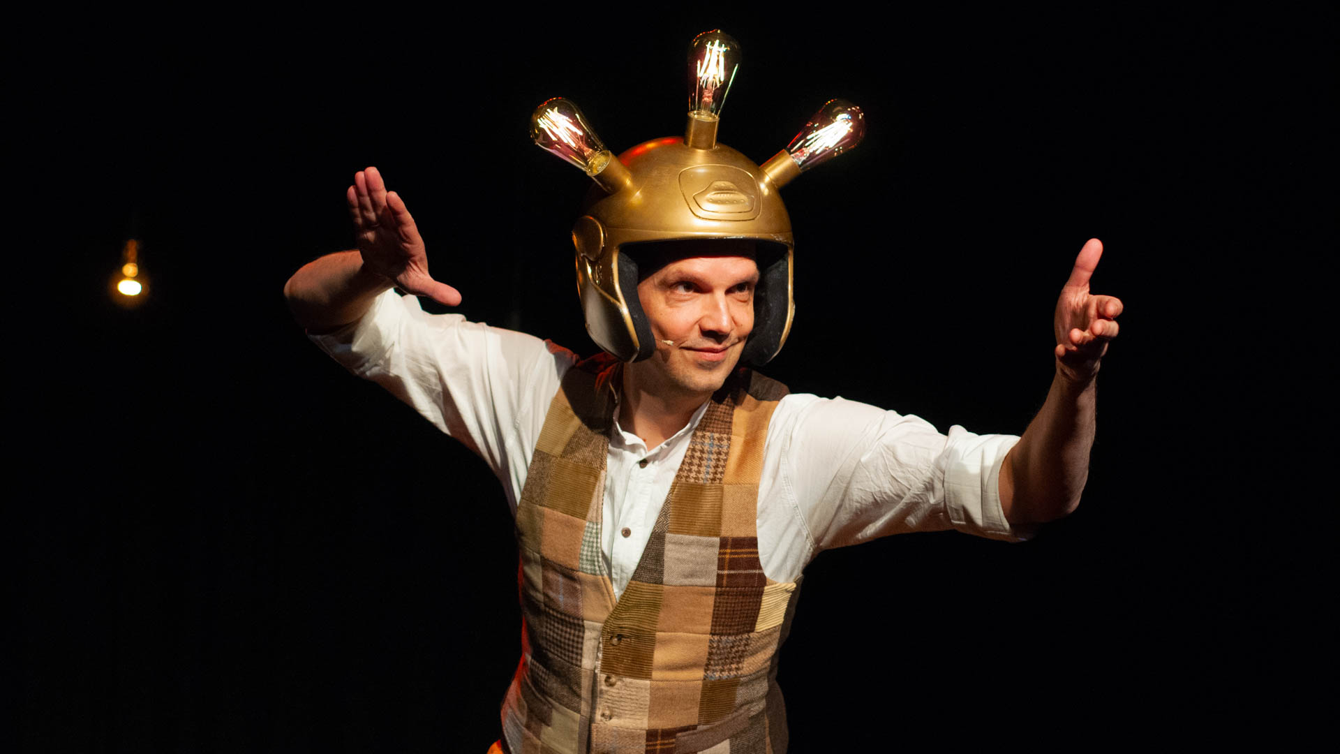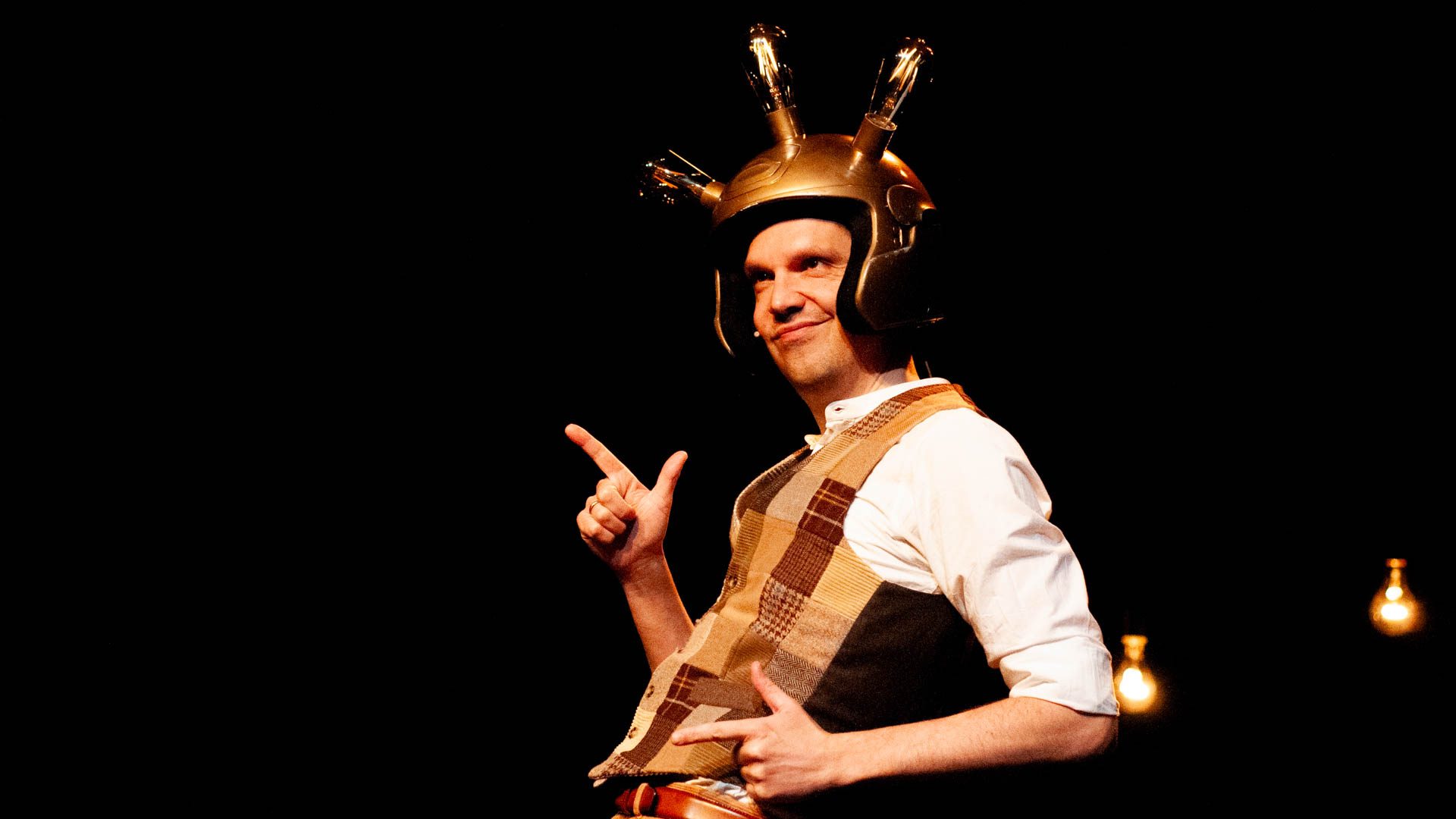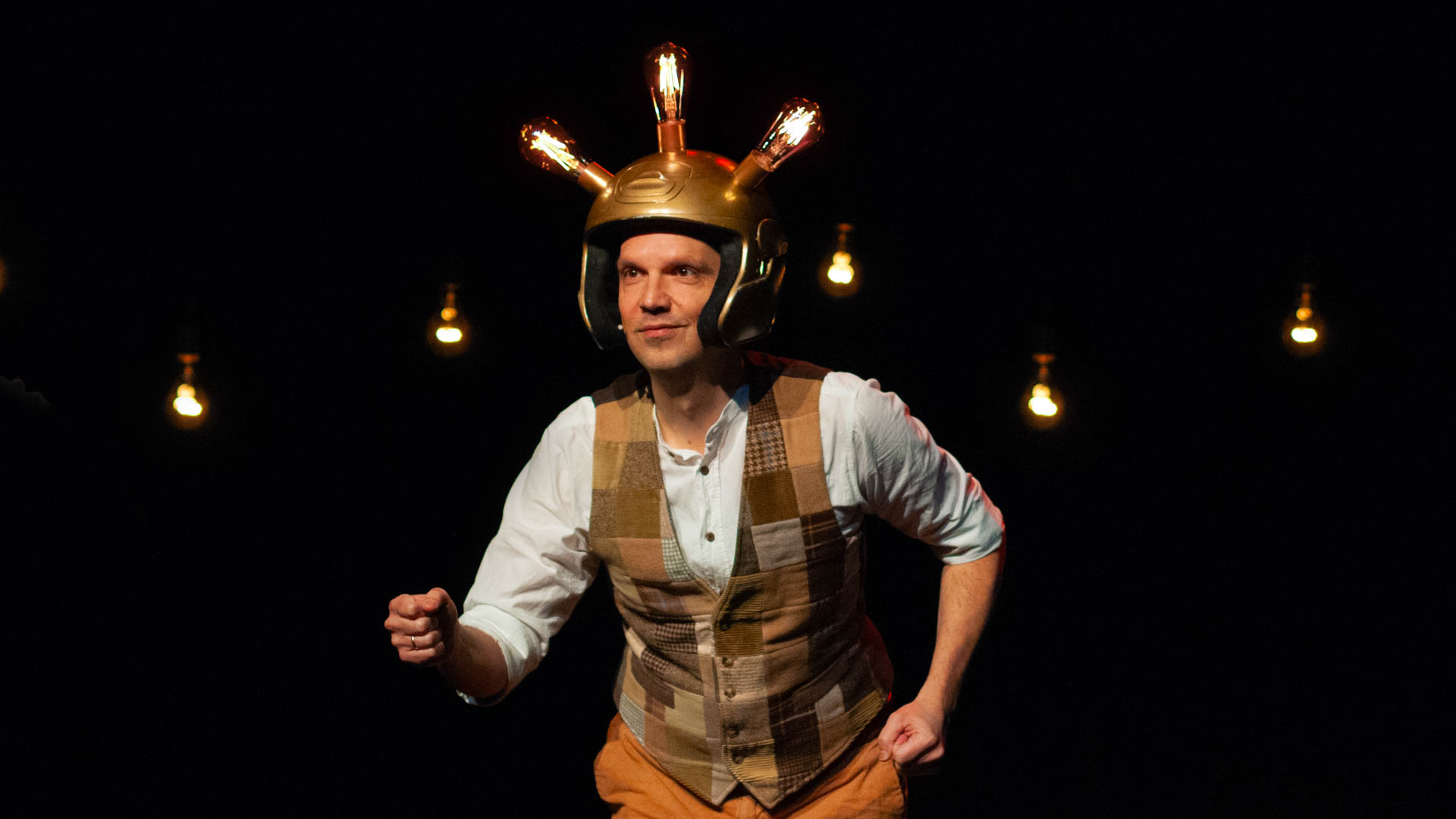 Na twee jaar diepgravend onderzoek naar uitvinders en uitvindingen (lees: veel Wikipedia) gaat Peter iets bedenken dat ons eindelijk zal verlossen van de chaos van vandaag. Iets met een helm… en lampen. Lachen? Zeker. Leren? Misschien. Wereldgeschiedenis schrijven? Absoluut.