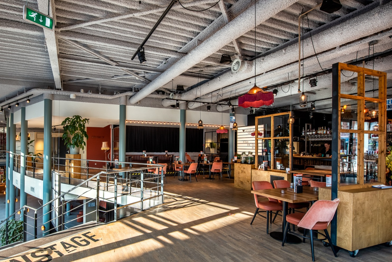 Het unieke aan het huren van de Grote Zaal voor uw lunch, diner of vergadering is dat dit op het podium plaatsvindt.